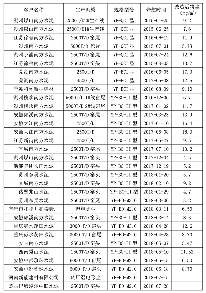 目前,江蘇一品環(huán)保已成功為中國建材南方水泥、西南水泥、浙能集團(tuán)長廣水泥、兆山水泥、重慶國貿(mào)水泥、安徽珍珠水泥、蘇州東吳水泥、寧波科環(huán)水泥、蒙古巴彥淖爾中聯(lián)水泥、河南新能等60余條水泥生產(chǎn)線進(jìn)行了達(dá)標(biāo)和超低排放改造,眾多的業(yè)績案例,使江蘇一品積累了豐富的改造經(jīng)驗和成熟的改造方案!