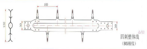 BS新型整體管狀芒刺線是一種改進(jìn)型的系列管型芒刺線,它的支撐主體是Φ20圓管,其強(qiáng)度大、剛性好,運(yùn)行中保證不斷線。原連接結(jié)構(gòu),如果安裝疏忽,掉線現(xiàn)象時(shí)有發(fā)生,造成電場(chǎng)短路。通過(guò)不斷的試驗(yàn),改進(jìn)了極線與框架之間的連接方式,采用承插式結(jié)構(gòu),就是掉了螺栓也不會(huì)掉線,自九六年正式使用以來(lái),從無(wú)掉線、斷線現(xiàn)象出現(xiàn),大大提高了正常投運(yùn)率。