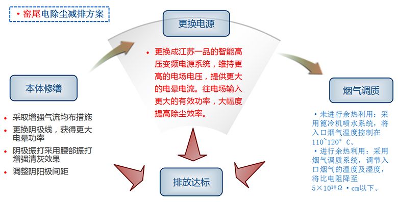 江蘇一品環保聯合東南大學結合用戶的實際需求,針對水泥行業電除塵器排放達標困難的問題,提出了完整可靠的解決方案。方案主要包括以下幾方面內容:
