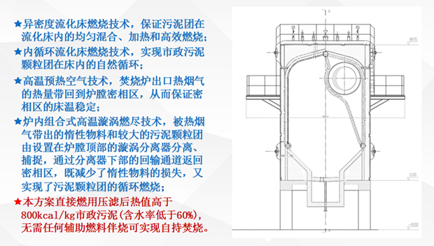 江蘇一品環保 獨具慧眼,根據環保政策需求,在充分對污泥處置市場和國內外處置技術調研的情況下,與上海交通大學緊密結合,成立校企聯盟,在上海交大原有的 “異密度流化床燃燒技術”已應用有10多年技術經驗的基礎上,近期再次 突破 “濕污泥自持焚燒技術”,該技術已實現“無需添加任何輔助燃料,直接焚燒壓濾后熱值高于800kcal/kg、含水率低于60%的市政污泥!”